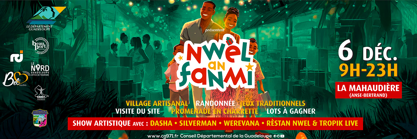 Le Département de la Guadeloupe vous donne rendez-vous le samedi 6 décembre 2025, de 9 h à 23 h, au site patrimonial de La Mahaudière à Anse-Bertrand, pour la 3ᵉ édition de “Nwèl an Fanmi”, un événement désormais incontournable du ...