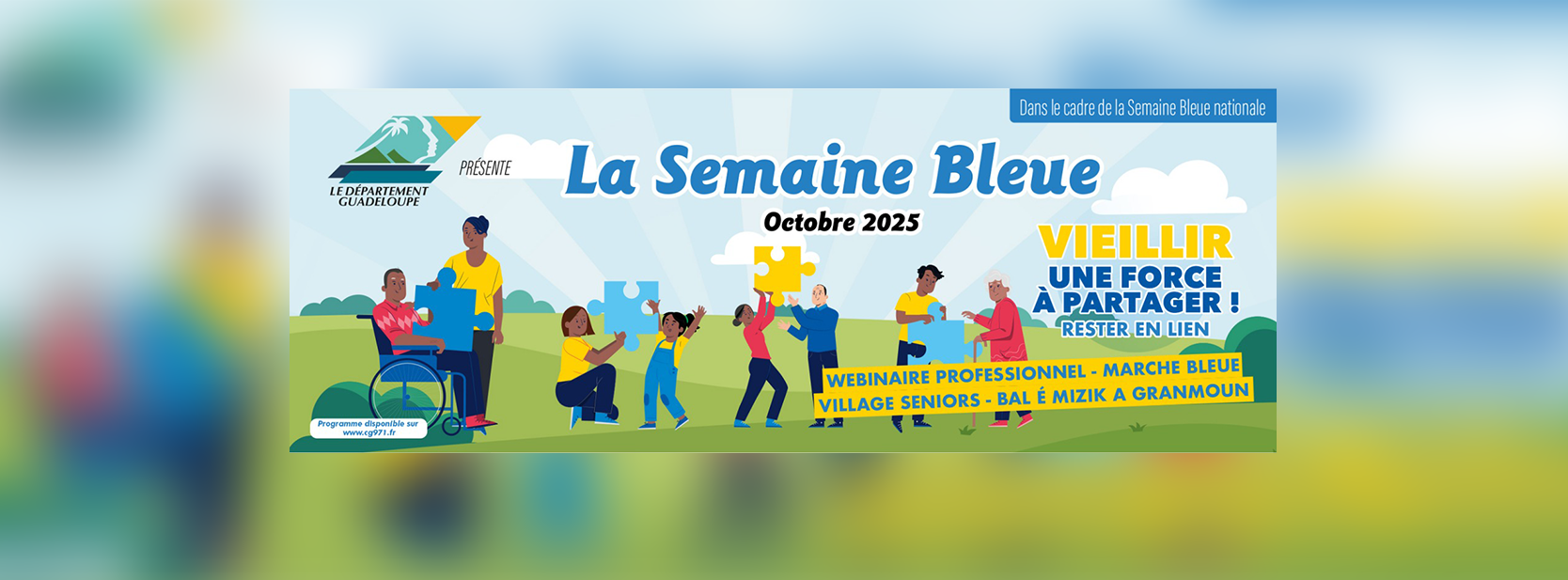 Du 27 septembre au 12 octobre 2025, la Guadeloupe participera à la Semaine Bleue, manifestation nationale dédiée aux personnes âgées et retraitées. Le Département, en partenariat avec les CCAS, les associations locales et le CHU, ...